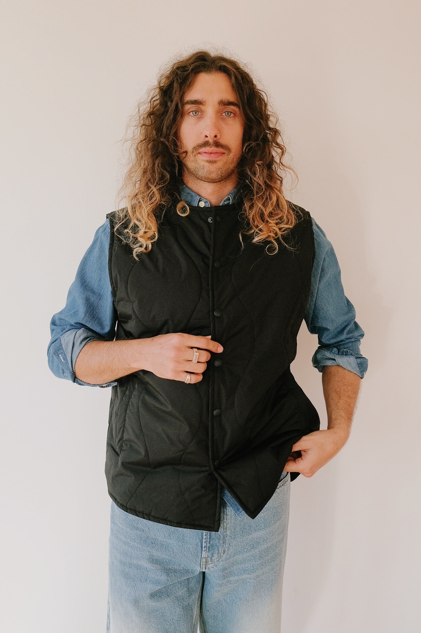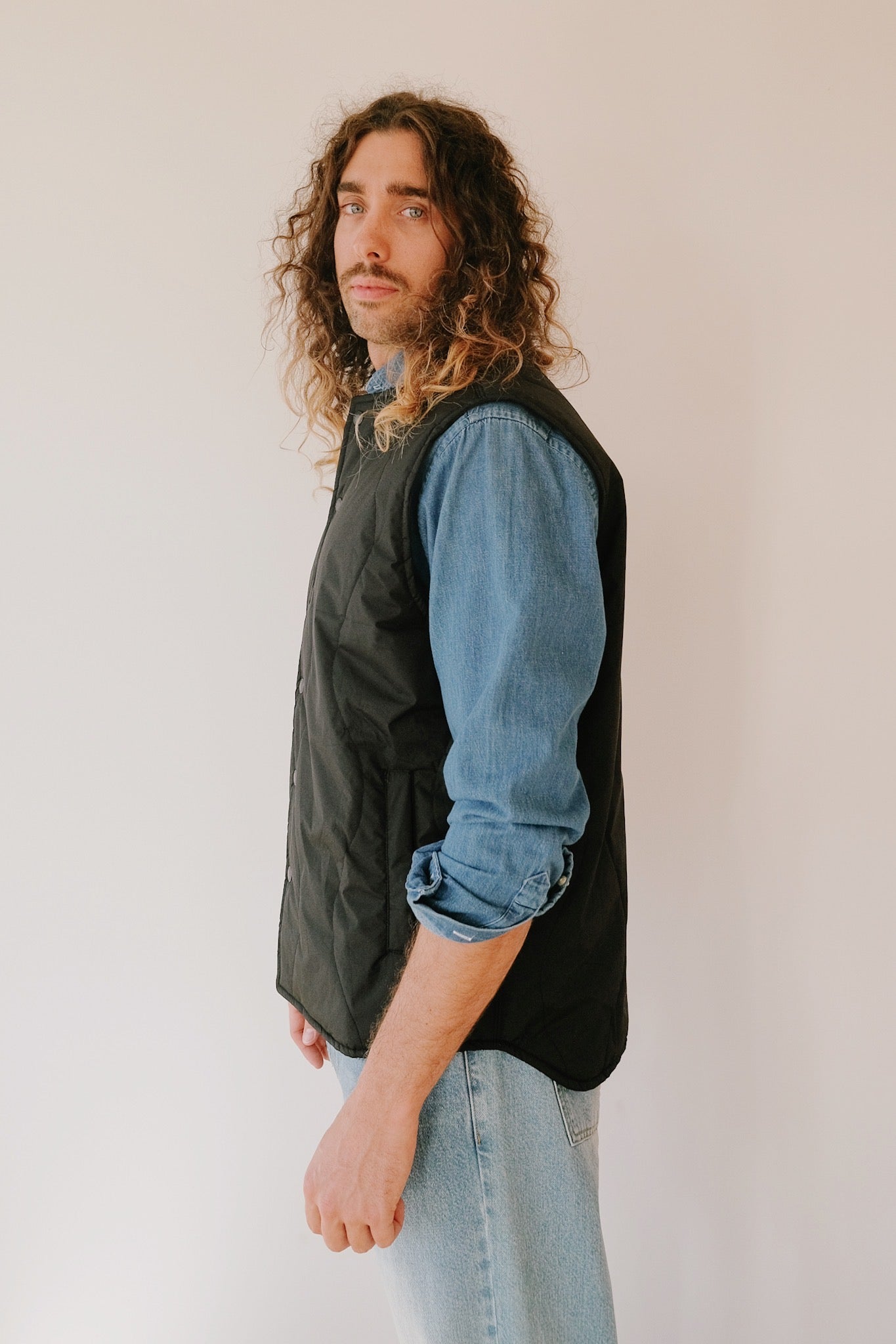 Meet your new go-to layer: the David Vest in sleek black. Crafted from recycled polyester, this light vest not only adds a cool edge to your outfit but also keeps things eco-friendly. Perfect for layering, it brings warmth without weighing you down—ideal for chasing adventures or city strolls with a playful twist. Slip it on and let your style do the talking!