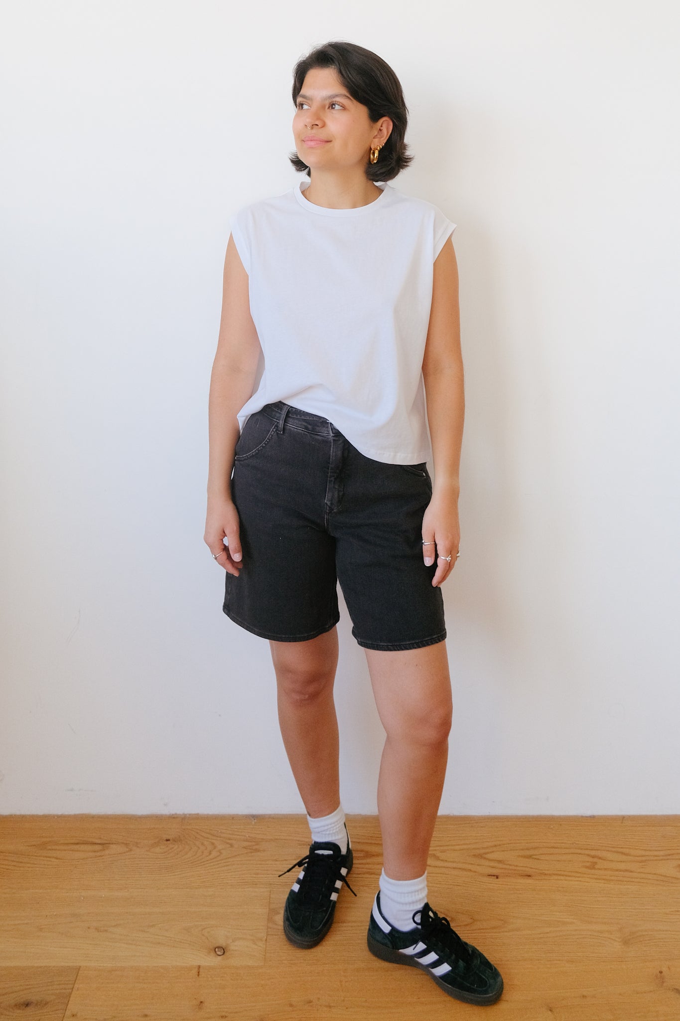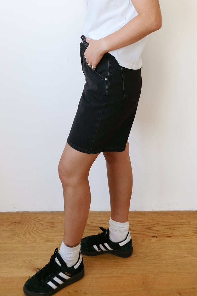 these are the softest denim shorts you'll ever wear! with a comfortable wide fit, you'll be feeling super soft and stylish. they have enough pockets for all your essentials and a small belt that you can also remove. time to level up your wardrobe game! this black denim will wash out over time and turn into a nice faded black shade.