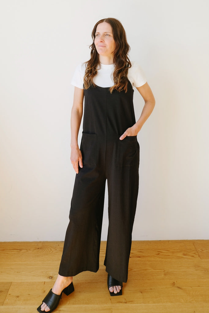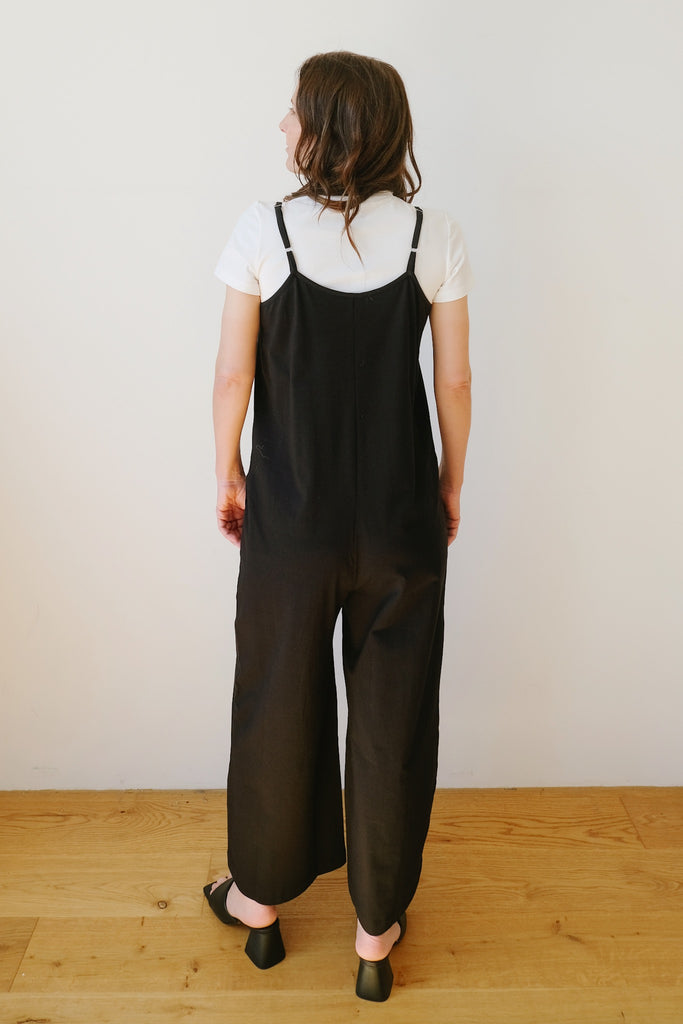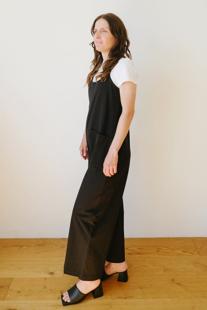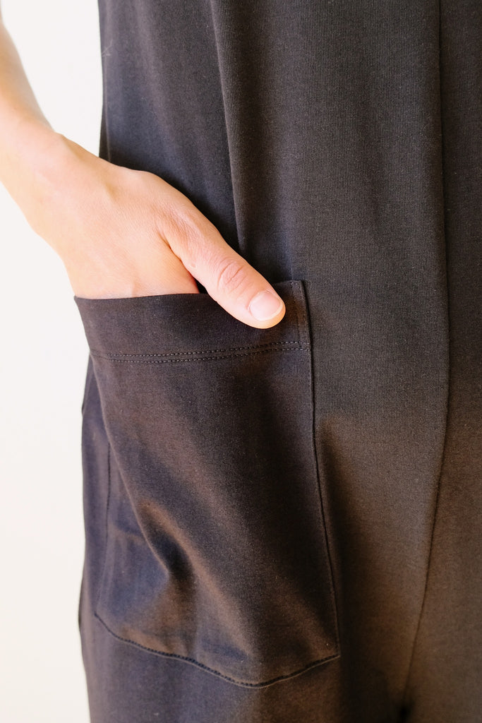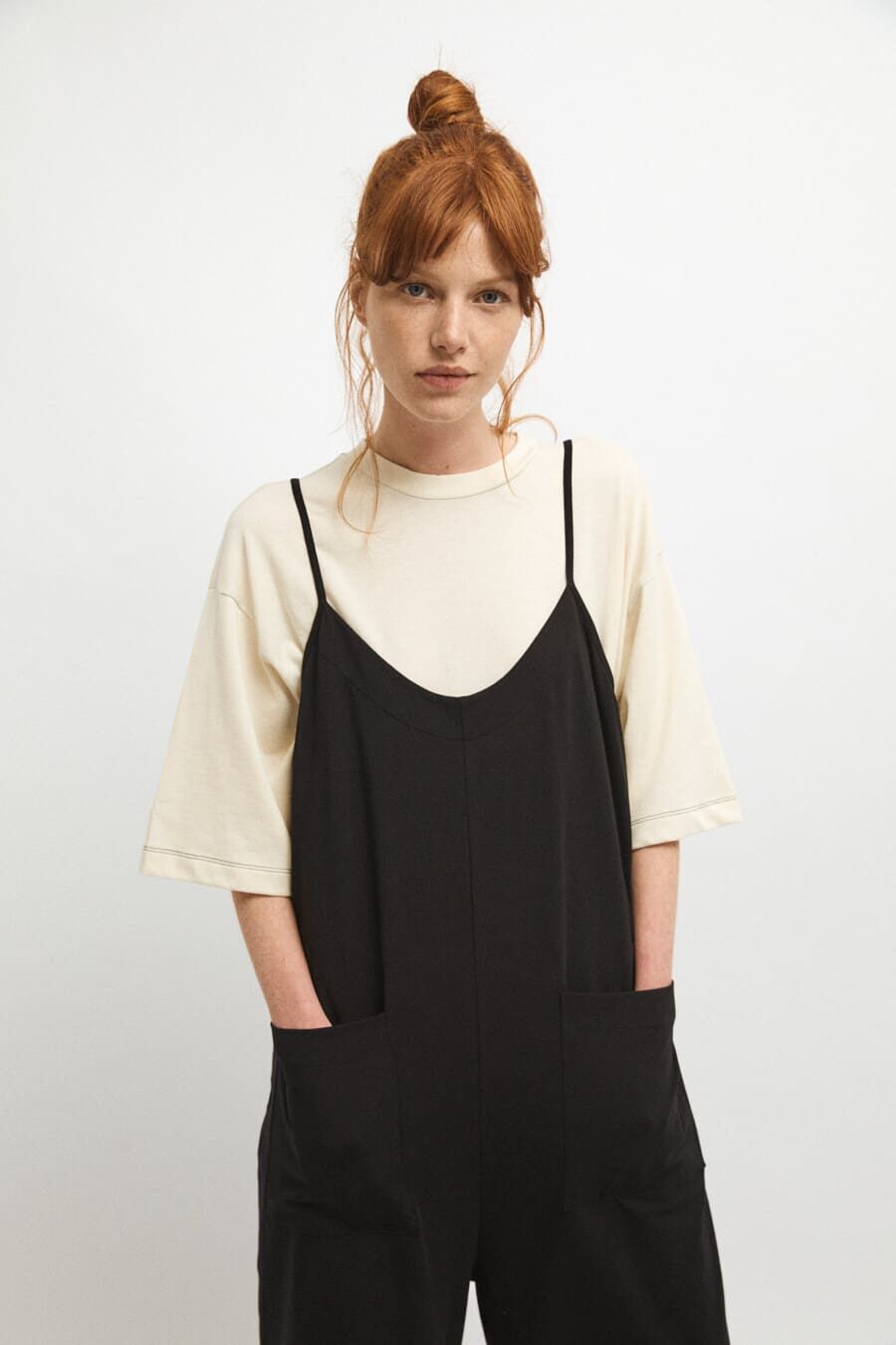 this jumpsuit is a perfect daily go-to piece. made from 93% cotton and 7% elastane, this long and wide jumpsuit features adjustable thin straps and a flattering V-neckline on both the front and back. with handy front patch pockets, it's perfect for any occasion.