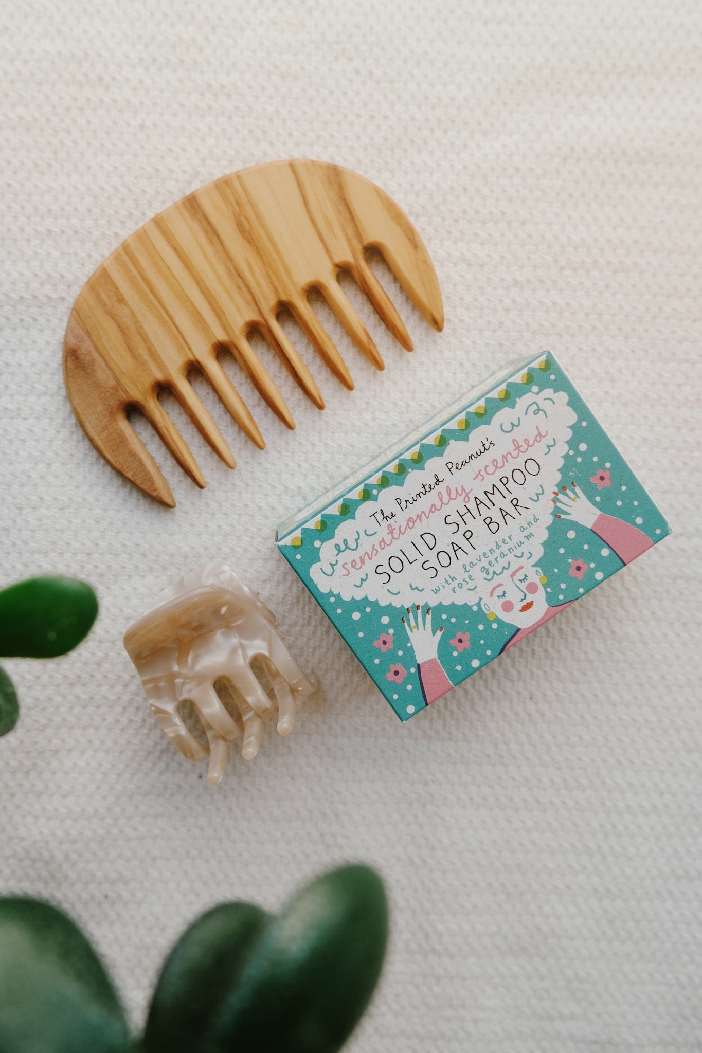 This gift set is for anyone who wants to say goodbye to bad hair days. The wooden comb is perfect for a quick fix and the natural shampoo bar is perfect for taking with you on the go. The mini claw goes with any hair color and is perfect for quick and easy hair styles - choose your color for a perfect match.