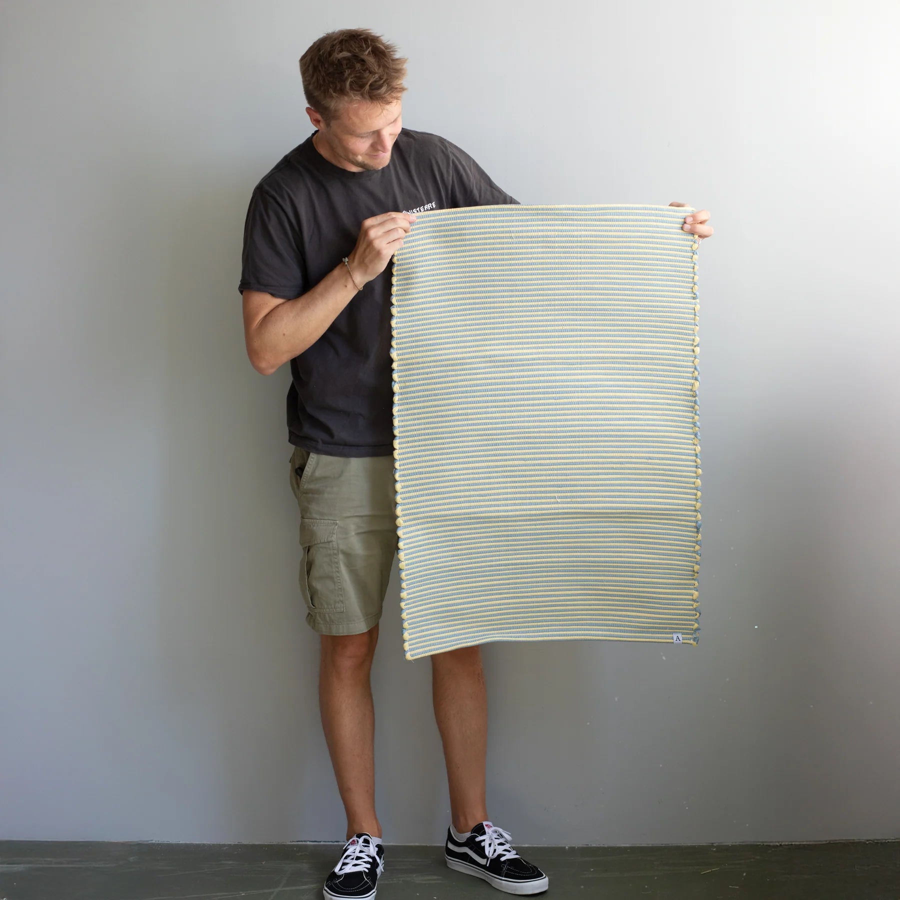 Designed in Switzerland and handwoven in Portugal, these carpets are crafted from leftover fabric scraps from the fashion industry using traditional handlooms. Add a splash of color to your home with these colorful pieces, perfect for brightening up your bathroom, bedroom, or any space you love! Made from cotton fabric remnants, each carpet measures 60 x 90 cm and comes in a variety of vibrant colors to choose from. Make every room pop with playful style and sustainable charm!