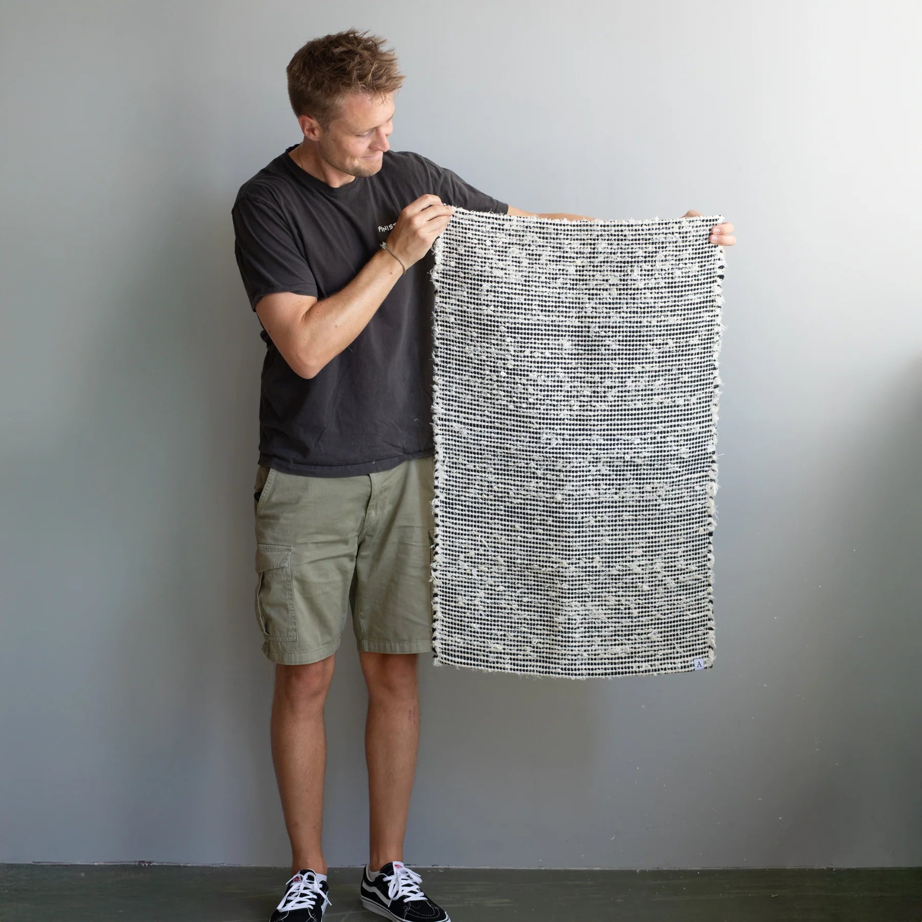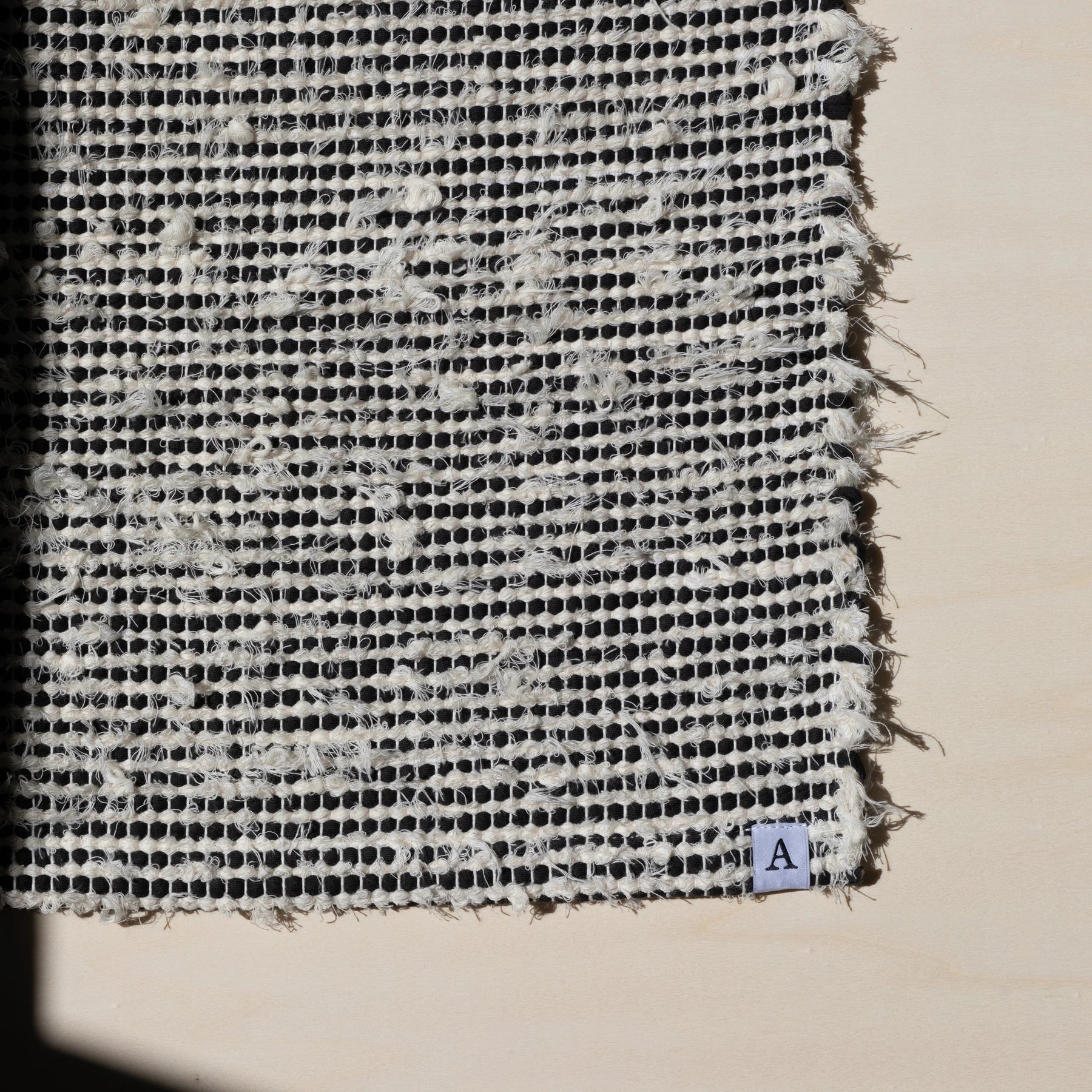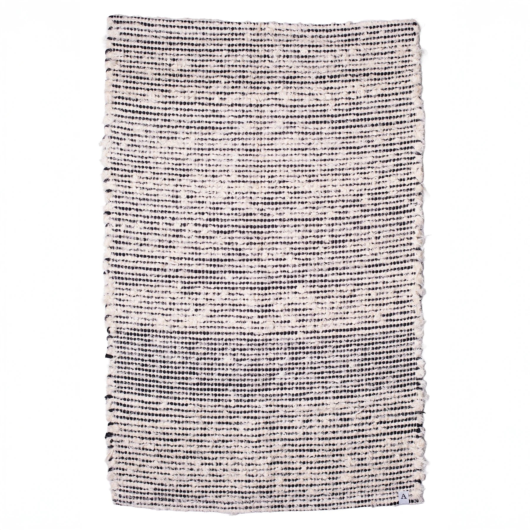 The Cotton Carpet – Tea is crafted from upcycled fabric remnants, mainly terry cloth pieces, using traditional looms. This small, monochrome rug adds a calm vibe to your living room and perfectly complements a simple, Scandinavian-inspired decor. Made from soft cotton, it measures 60 x 90 cm and is easy to clean—bringing both style and sustainability into your home with a playful touch.