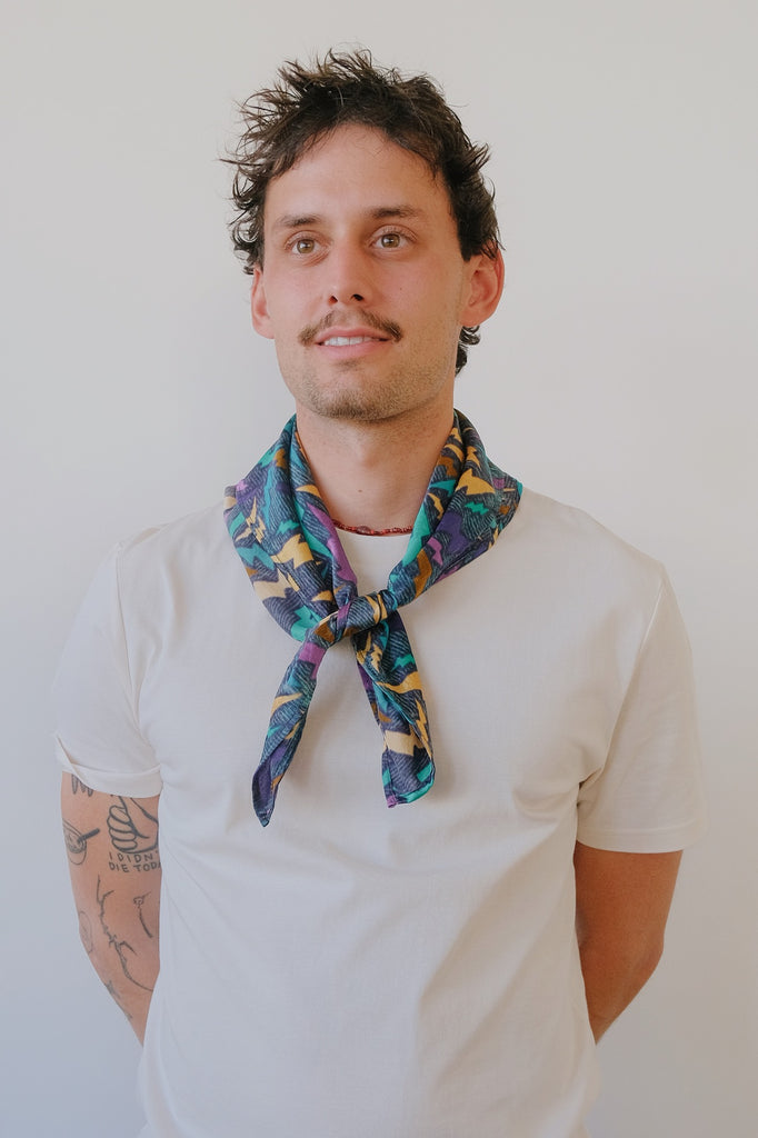 get ready to layer up with our cotton foulard in a playful marble pattern! made with soft silk, this scarf is perfect for adding a unique touch to any outfit. who says staying warm can't be fun?!