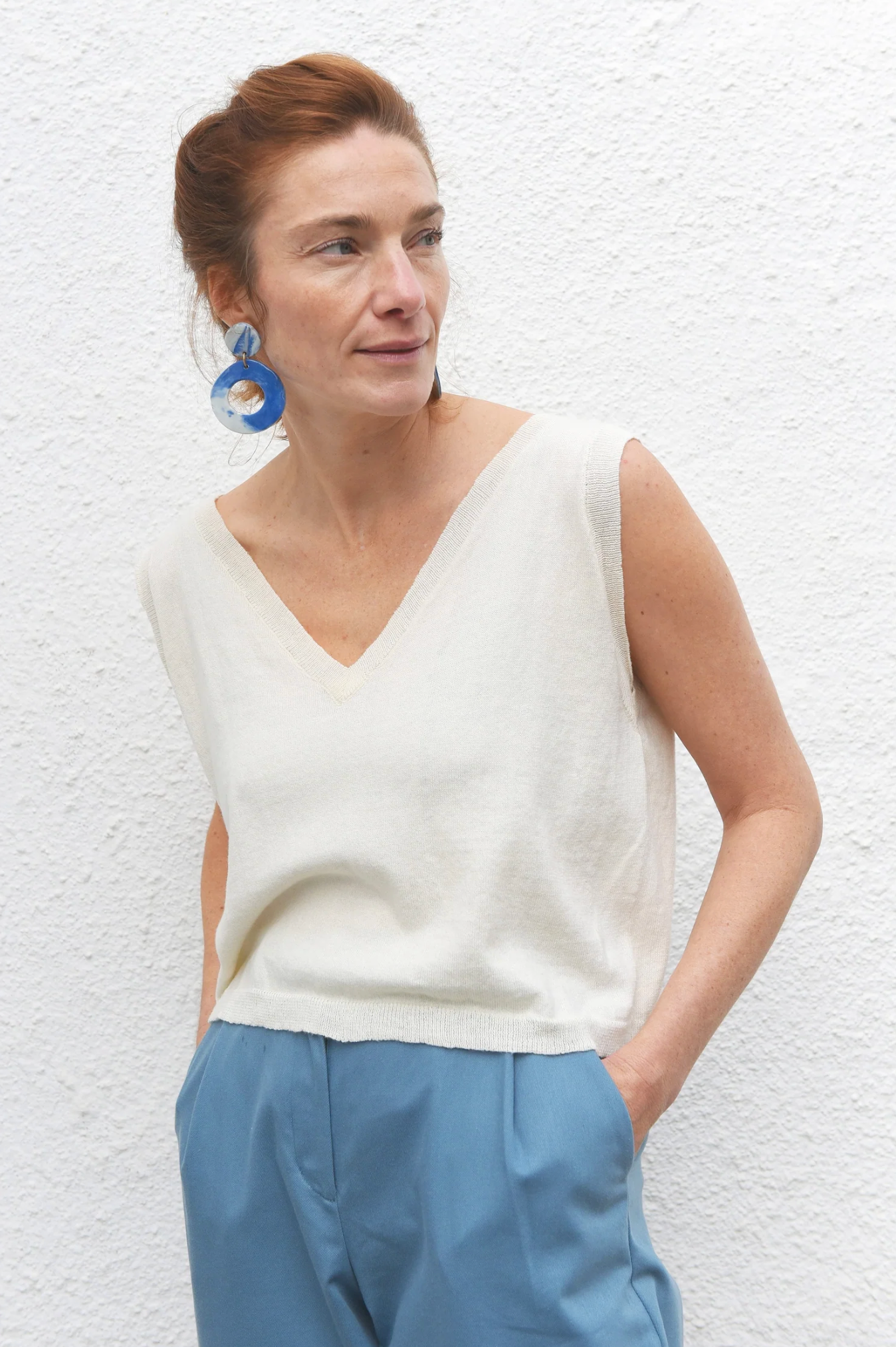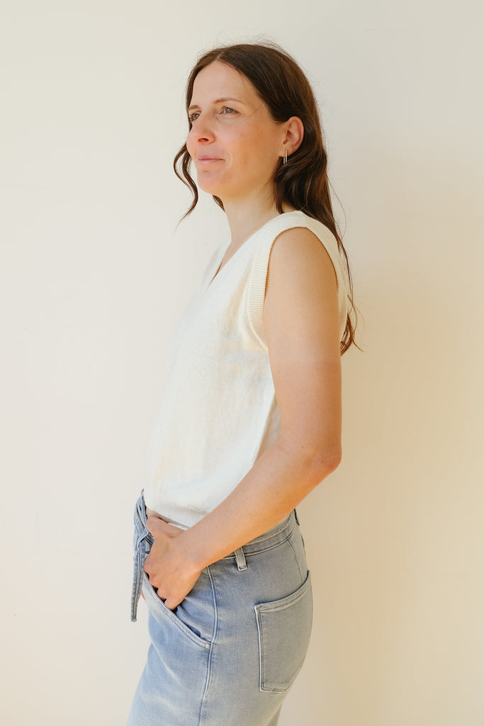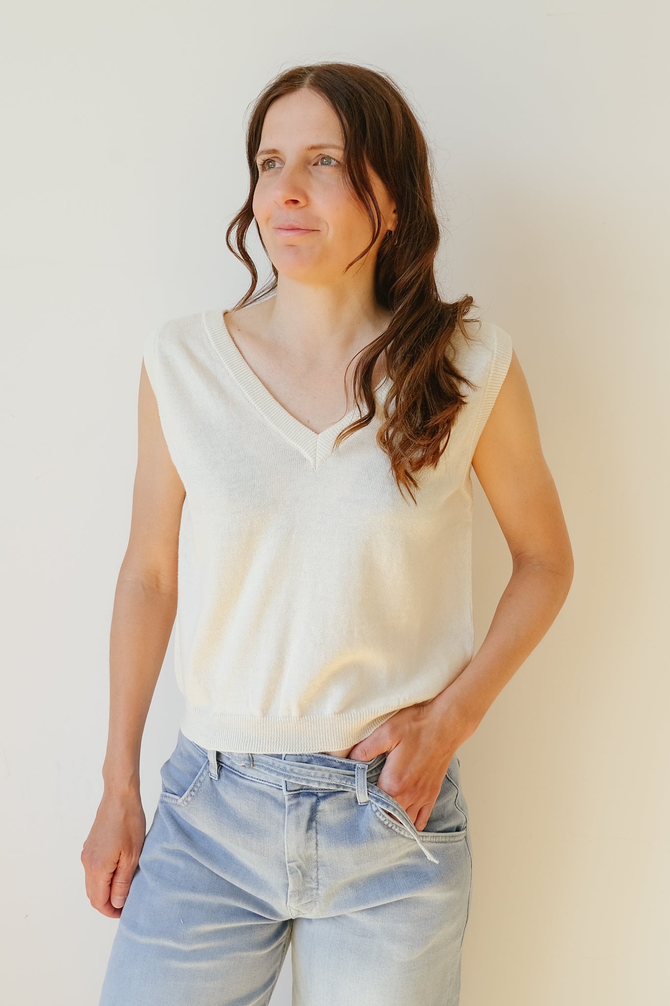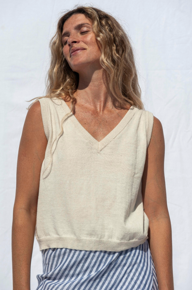introducing flora, the versatile cropped knit top in moss green. with a deep v-neck in the front and back, and underarm cut-outs (for ultimate breeziness), this playful top features cute rounded hems. the bright green is fun and summery.