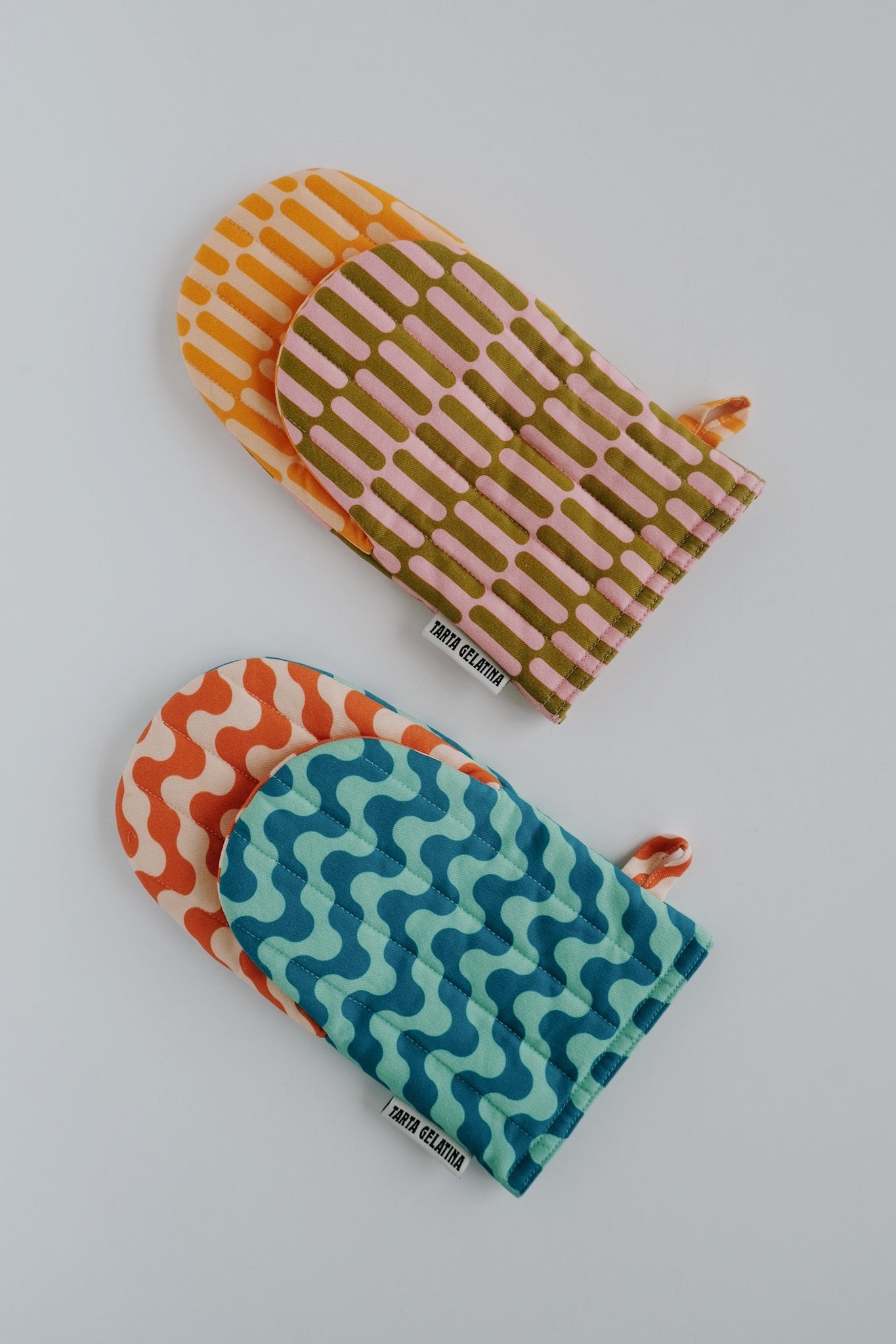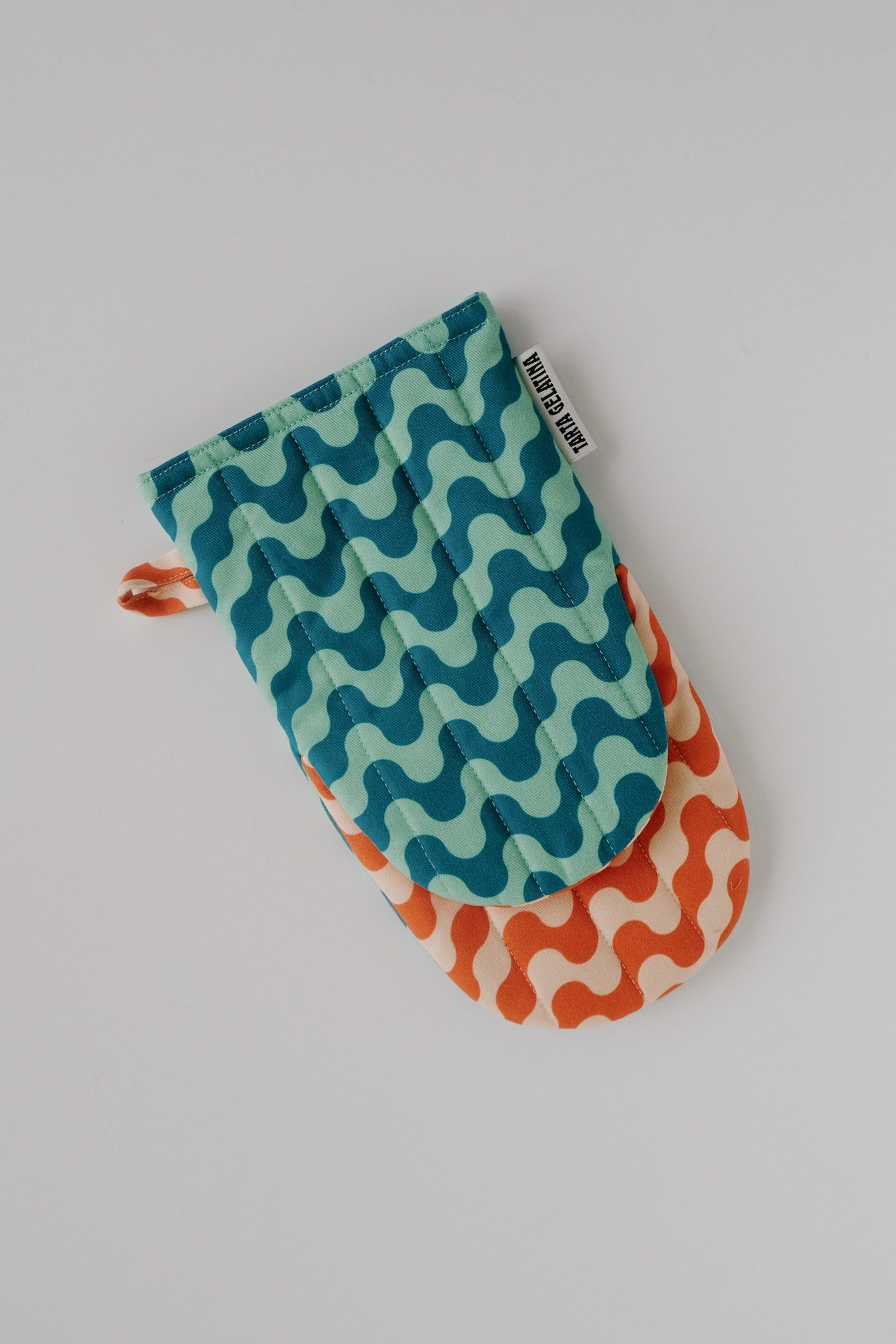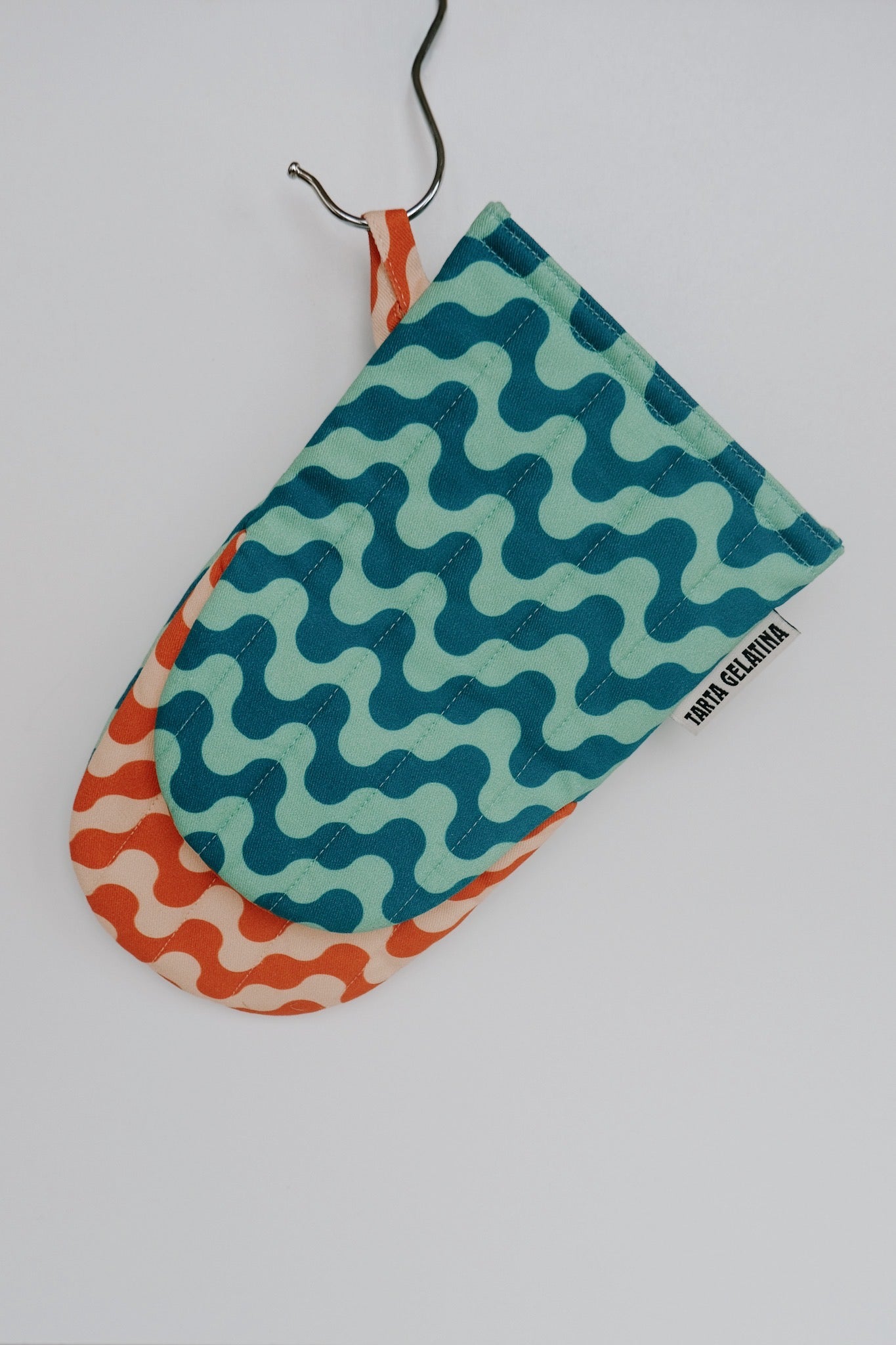 bored of simple kitchen accessories? this bright and fun oven mitt doesn't only protect your hands from the heat, it will also make sure you keep smiling. you can also pair it with the matching pot holder for all over kitchen fun.
