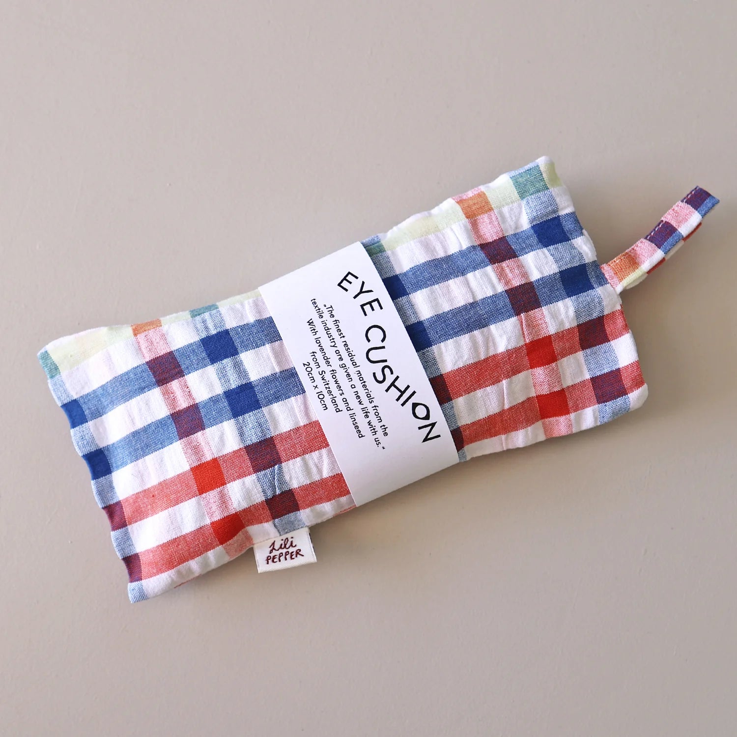 these fun eye pillow are bright and colourful and will make sure you have even more "ooohm" moments. you can put this eye pillow in the fridge for 15 minutes before using to give it an extra cooling effect. the lavender will calm your eyes and your senses. the eye pillows are made in india from left over fabrics and then filled in switzerland with local linseeds and lavender.