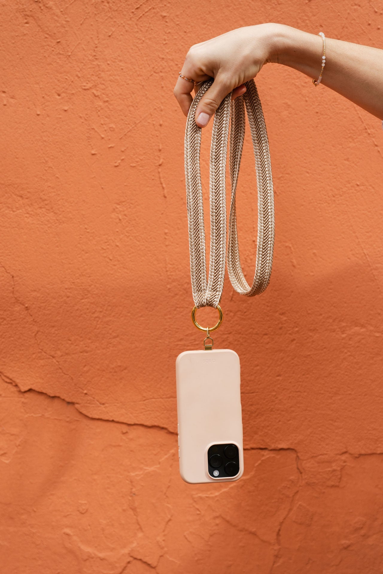 this set contains a phone clip and a classic carabiner. it is compatible with all our phonechains and keychains, so you can choose if you prefer to wear your phone crossbody or around your neck.
