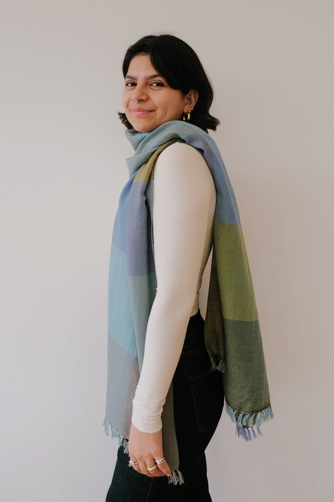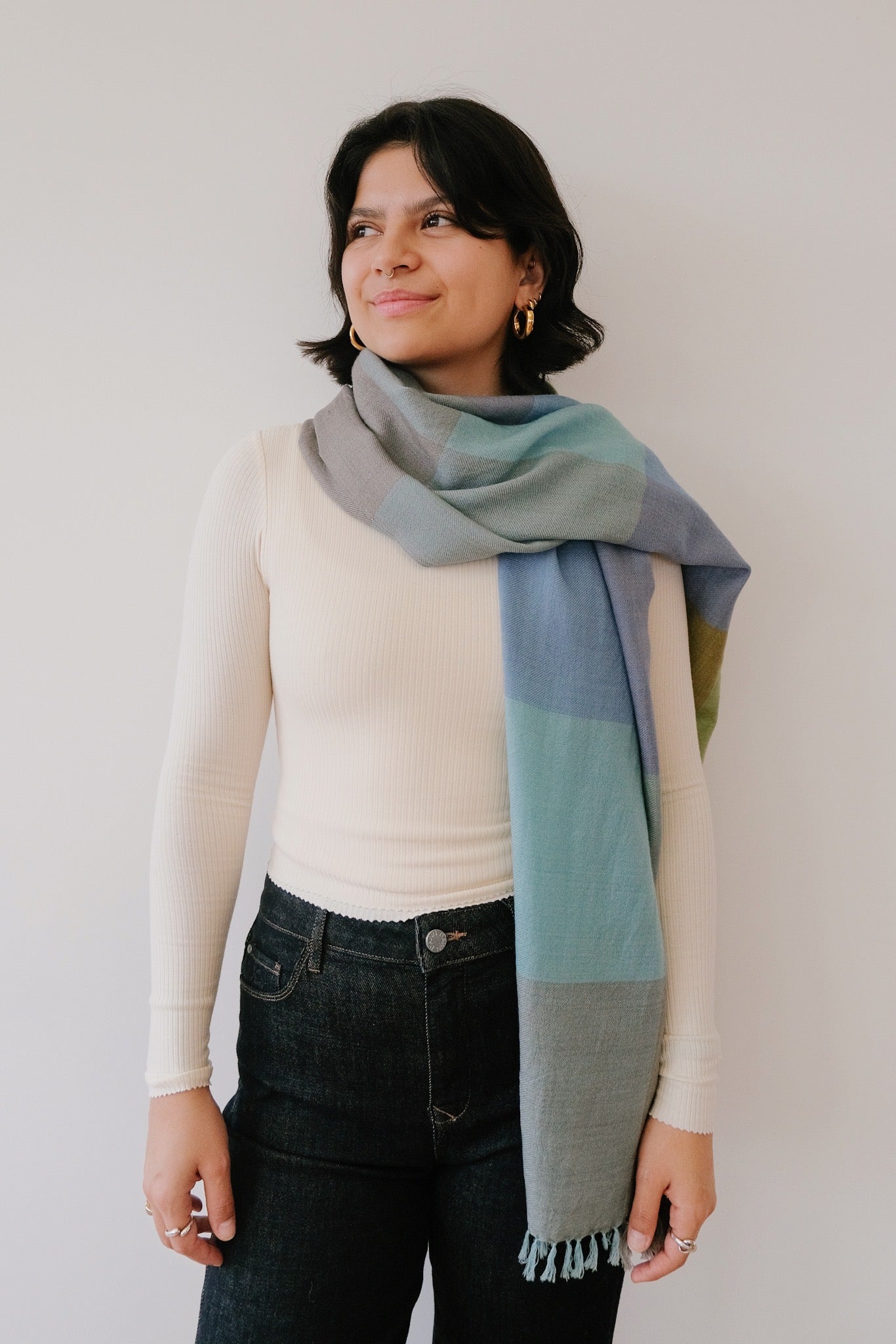A super cozy and soft scarf to keep you warm on colder days. The size allows you to wrap it around your neck or wear it over your shoulders. We love the fun color combination to brighten any day!