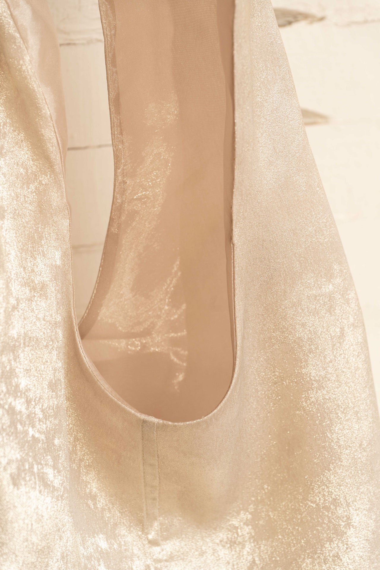 Thanks to a simple knot or loop you can easily transform the bag from a shoulder bag into a crossbody bag, and it’s fully reversible. One side is shiny and glimmery, while the other is more casual — change it according to your mood.