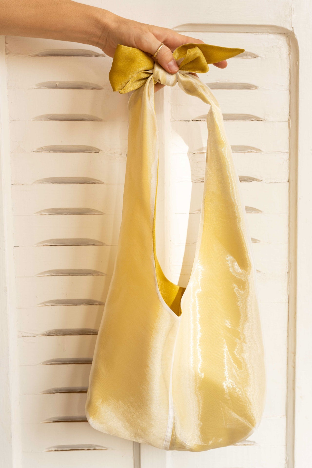 Thanks to a simple knot or loop you can easily transform the bag from a shoulder bag into a crossbody bag, and it’s fully reversible. One side is shiny and glimmery, while the other is more casual — change it according to your mood.