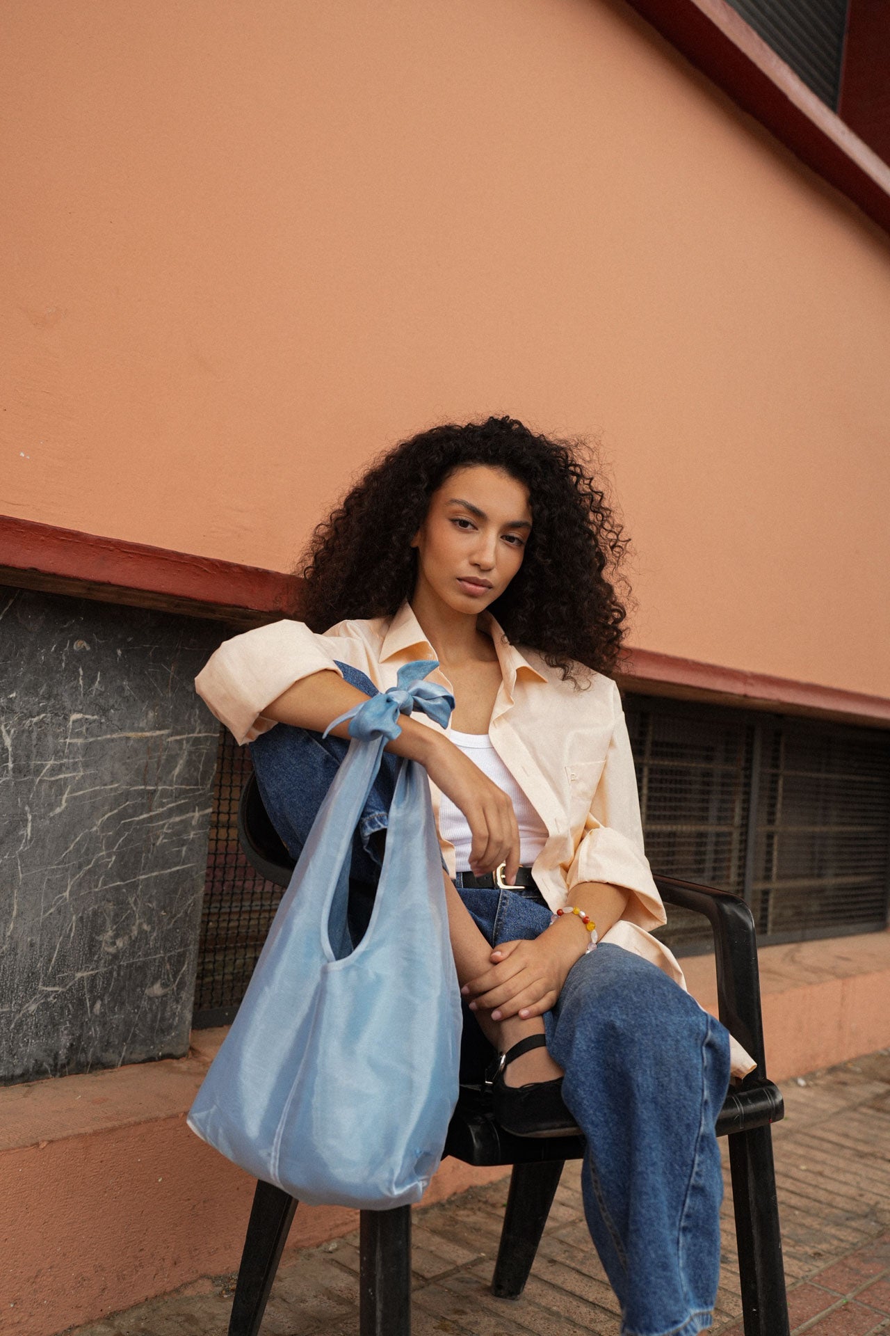 Thanks to a simple knot or loop you can easily transform the bag from a shoulder bag into a crossbody bag, and it’s fully reversible. One side is shiny and glimmery, while the other is more casual — change it according to your mood.
