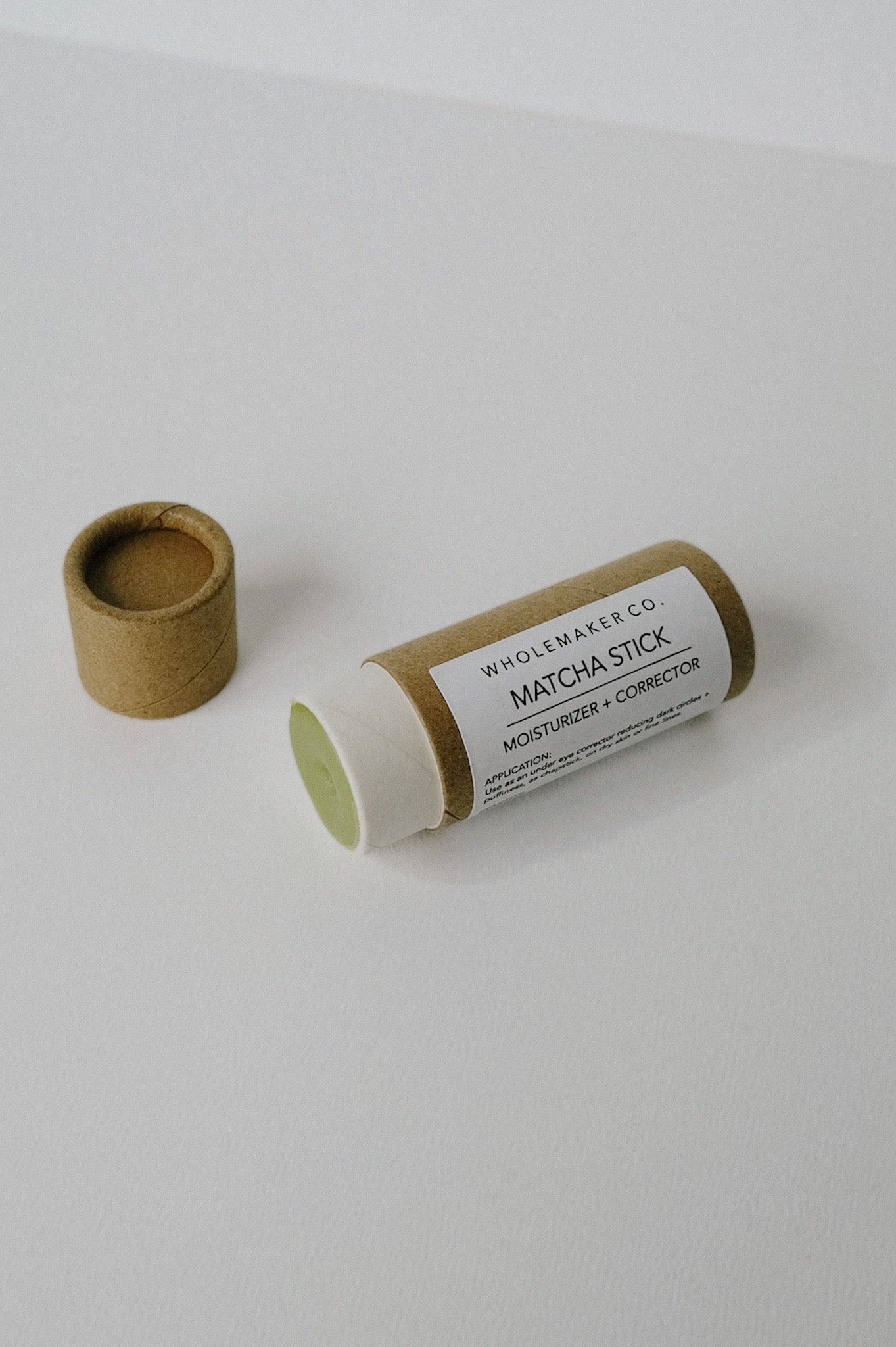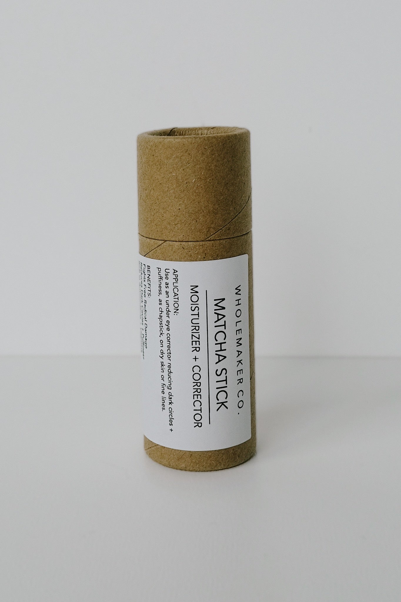 An old best seller is finally back! Revive tired skin with the matcha stick - rich in antioxidants, caffeine, and tallow, this all-in-one moisturizer + corrector reduces puffiness, dark circles, and fine lines. use as chapstick or on dry patches. Comes in an eco-friendly tube, twice the size of a 'normal' chapstick. bye-bye, tired eyes, dry lips and irritated skin!