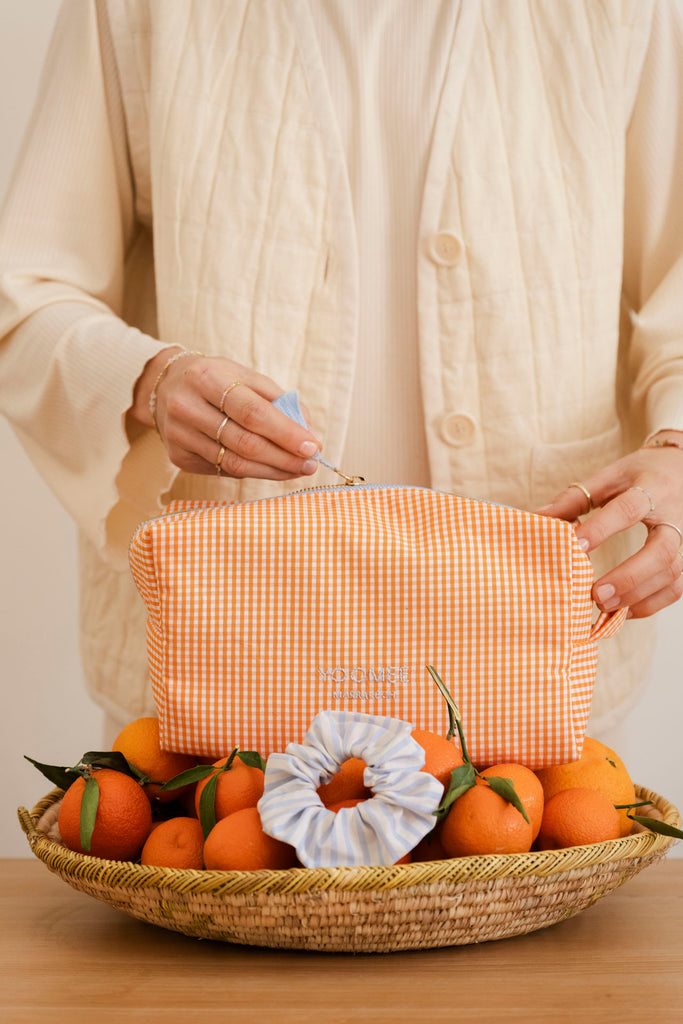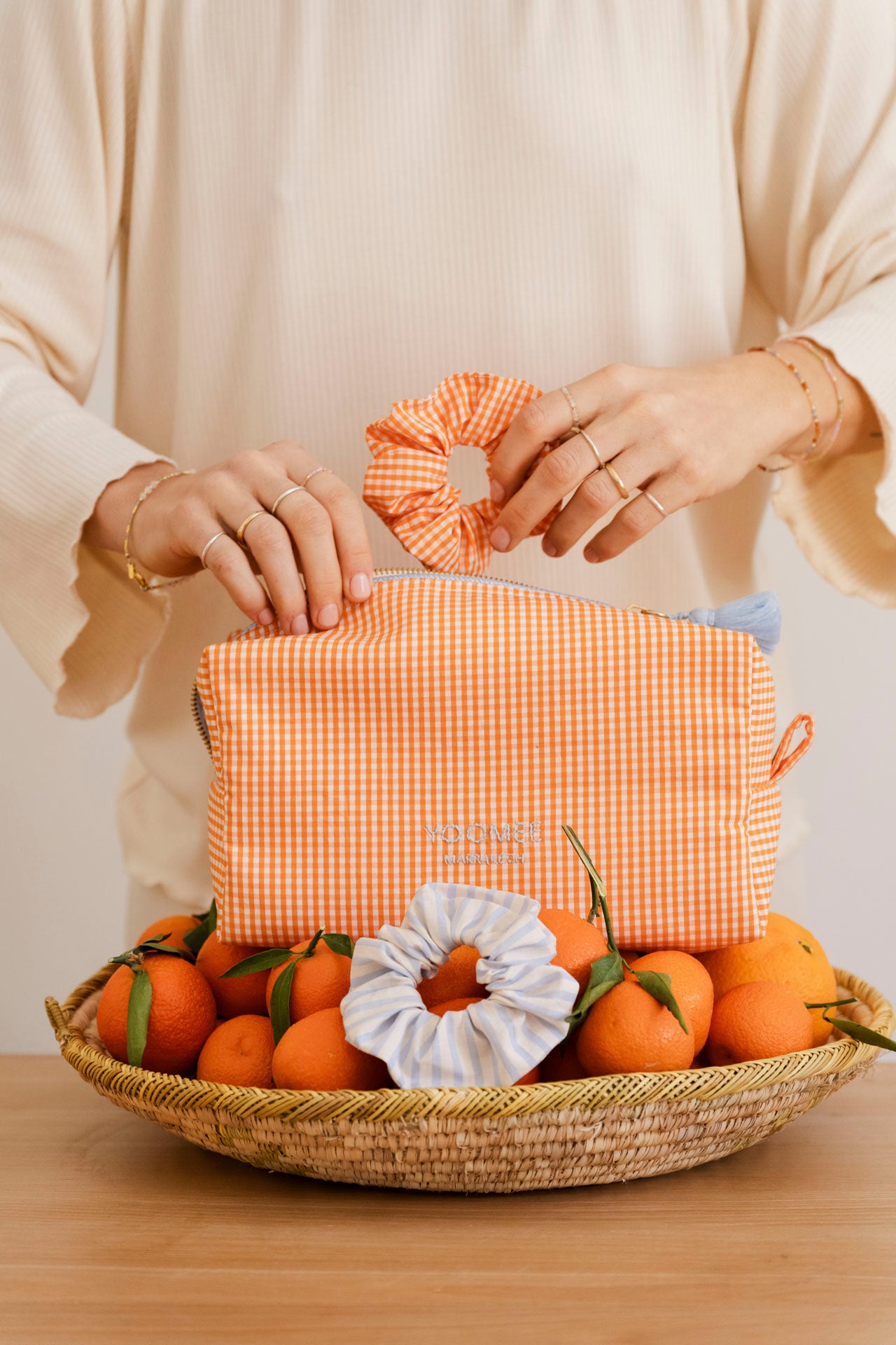 this colorful necessaire is perfectly sized for all your bathroom essentials. it features unique cotton fabrics, a hand-embroidered logo and an intricate border along the zipper. it also has a cute little tassel on the zipper.