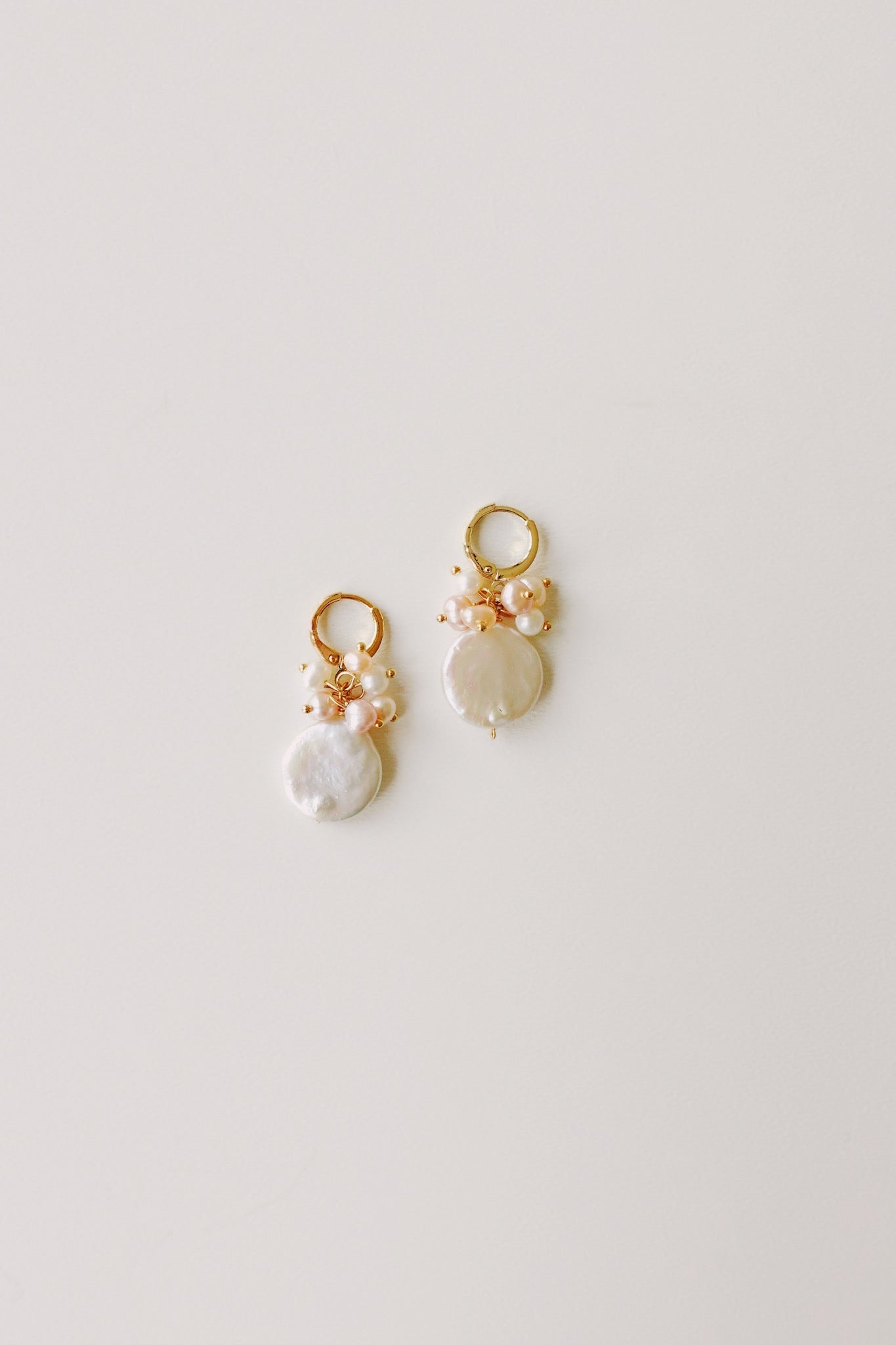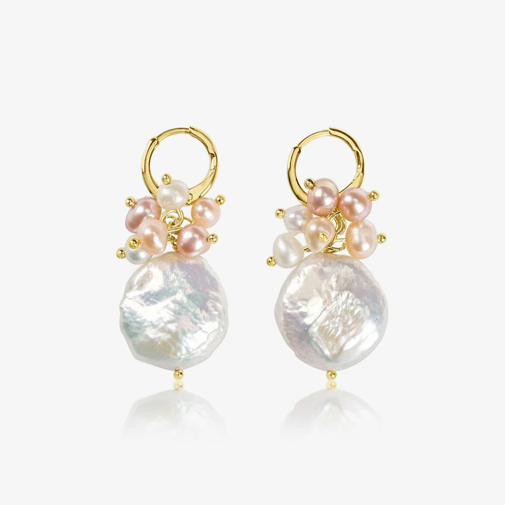 These playful pearl earrings add a touch of lightness to any look with their soft tones of white, gold, pink, and violet. Made from flat freshwater pearls and 18k gold-plated 925 sterling silver, they are handmade, nickel-free, and gentle on the skin. A charming accent for everyday wear.