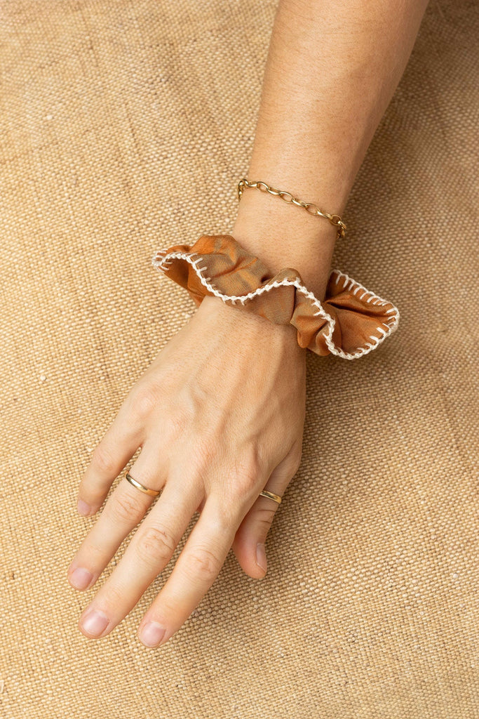 The MEDINA linen scrunchie is handmade with love by the al kawtar women’s association, an organisation founded in the middle of the famed medina of marrakech. they are made from left over linen.