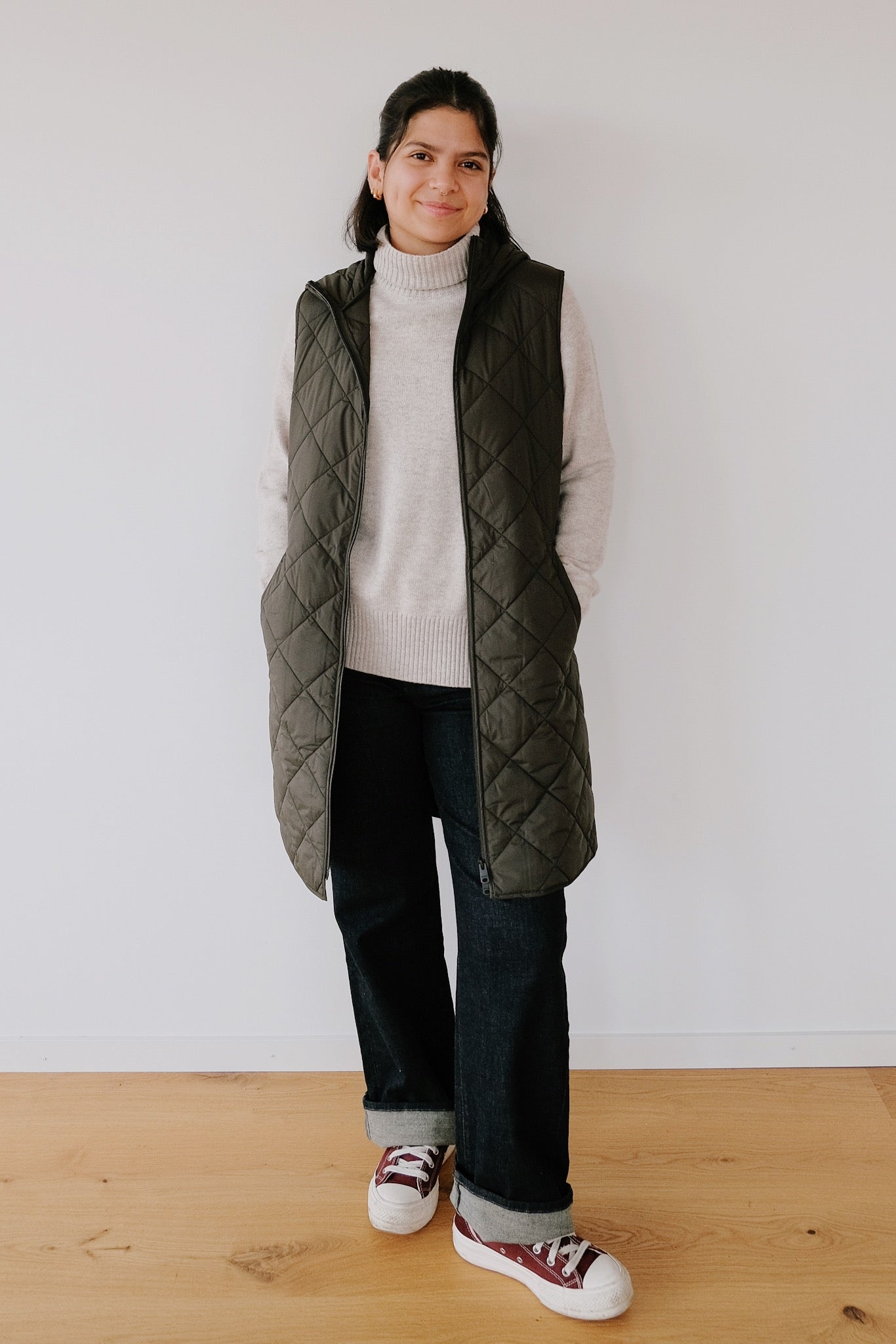 This quilted vest is the ultimate go-to for those in-between days-or a cozy layer under your coat when it’s chilly. Made from recycled polyester, it adds just the right amount of warmth. With a unisex fit, pick a smaller size if you want it to hug you just right!
