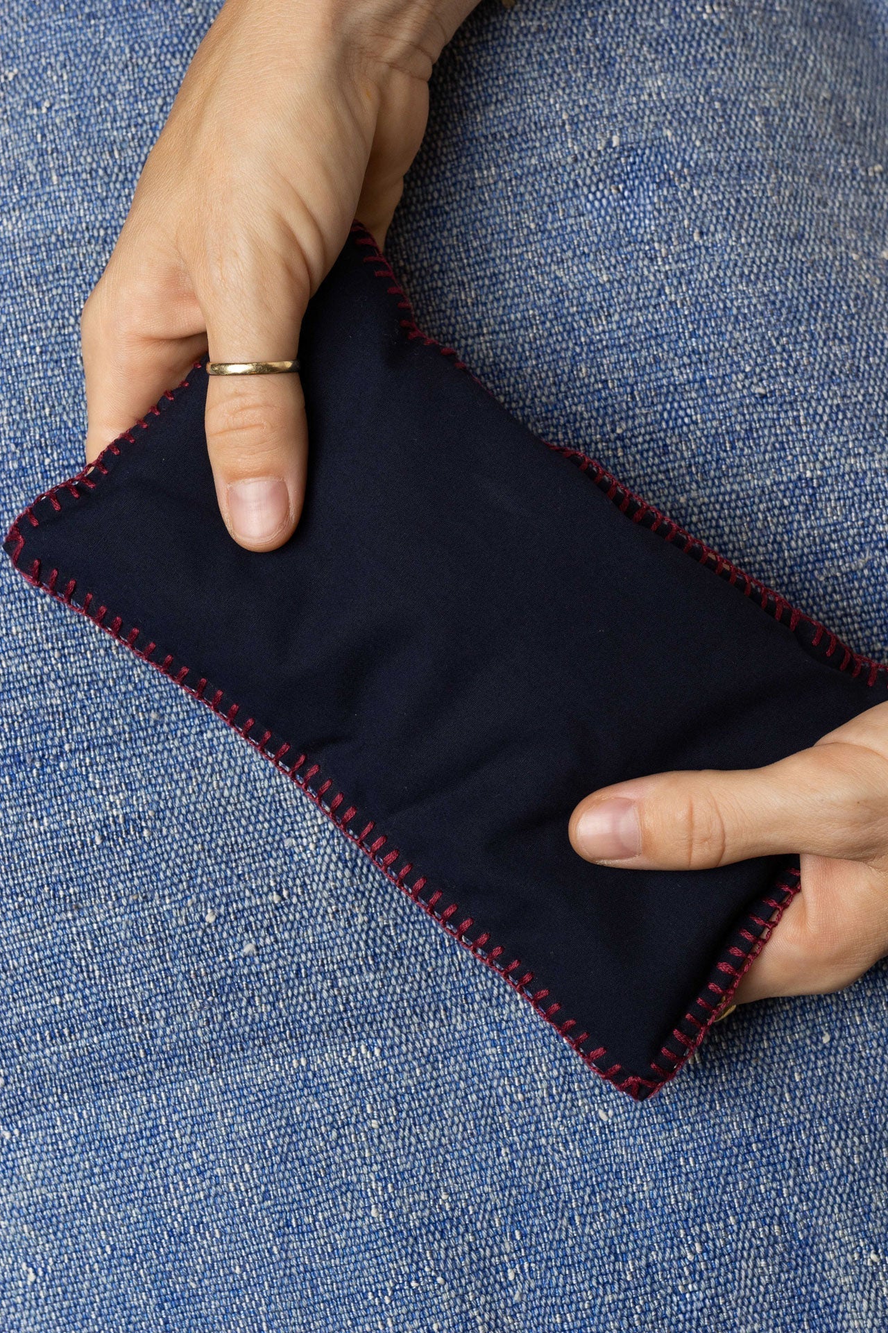This eye pillow will offer you a moment of peace and calm. It is handmade by a women's association in the medina of marrakech. The inside pillow can be removed and the outer pillow can be handwashed. This eye pillow is neatly decorated by hand using a special moroccan technique called "hbik".