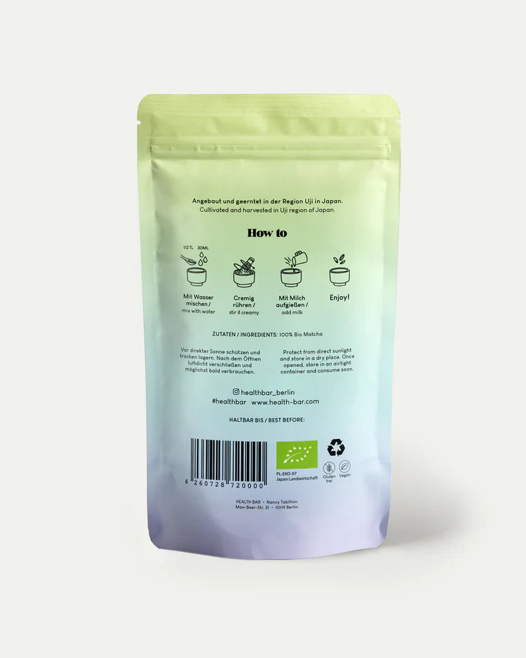 health bar was founded in 2019 by nancy. the brand aims to make matcha a simple, daily ritual that promotes well-being and mindfulness. their organic-certified matcha is sourced from a family-run farm in japans' tar region. combining tradition and quality, health bar helps bring wellness into everyday routines.