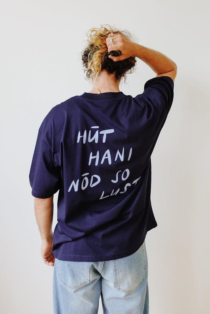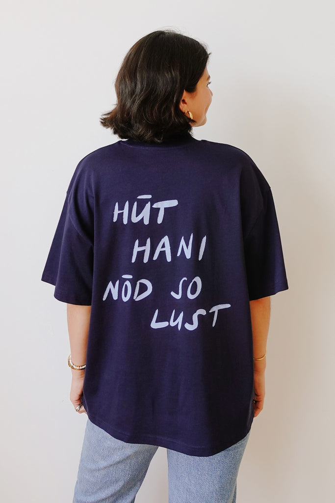 By now most of you already know our "hüt hani nöd so lust" series. Because we absolutely love it we decided to make an oversized version that features a bold back print instead of a print on the front. This shirt will let people know you're not in the mood for anything today. Say it without saying it!