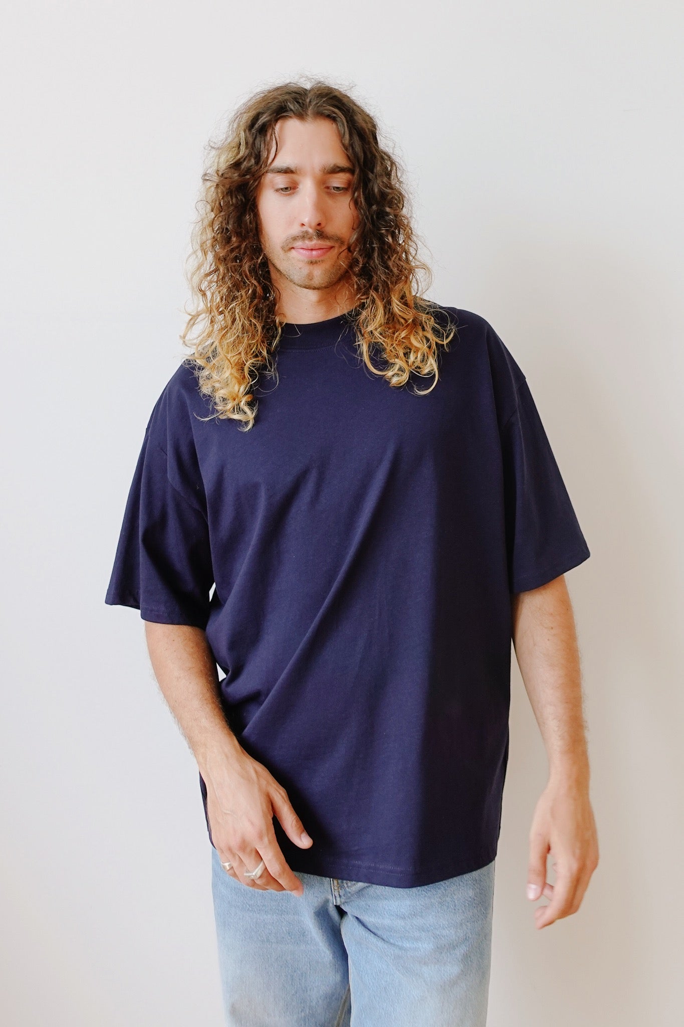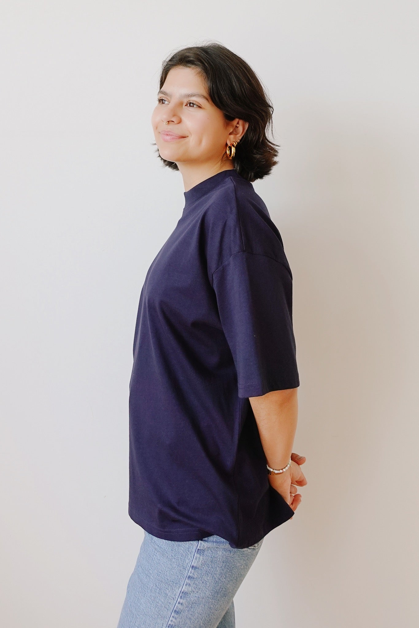 oversized fit, slightly longer sleeves, wide hems, draped shoulders